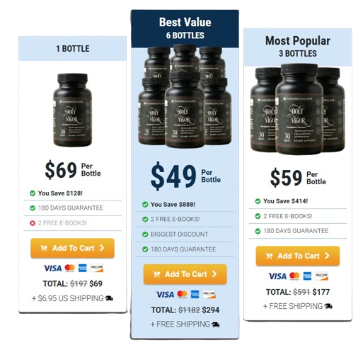 Holy Vigor Male Enhancement is mainly available through the official product website and selected online retailers. Purchasing from the official site helps ensure authenticity and may provide access to promotional discounts or money-back guarantees. Some offers include bundle packages for longer-term use and free shipping.